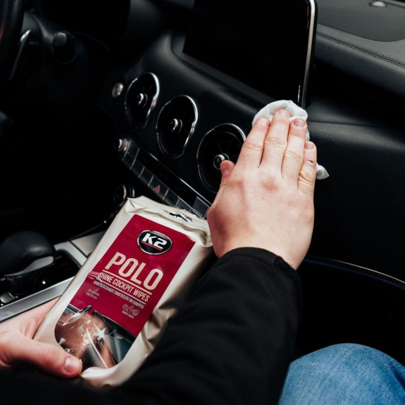 De vochtige doekjes K2 POLO SHINE WIPES zijn speciaal bedoeld voor het reinigen en onderhouden van het dashboard en alle soorten kunststof onderdelen in de auto. Ze verwijderen snel en gemakkelijk vuil en stof, en laten een licht donkerdere, glanzende laag achter op het oppervlak. Ze beschermen tegen schadelijke UV-stralen en verminderen opnieuw neerslaan van stof.